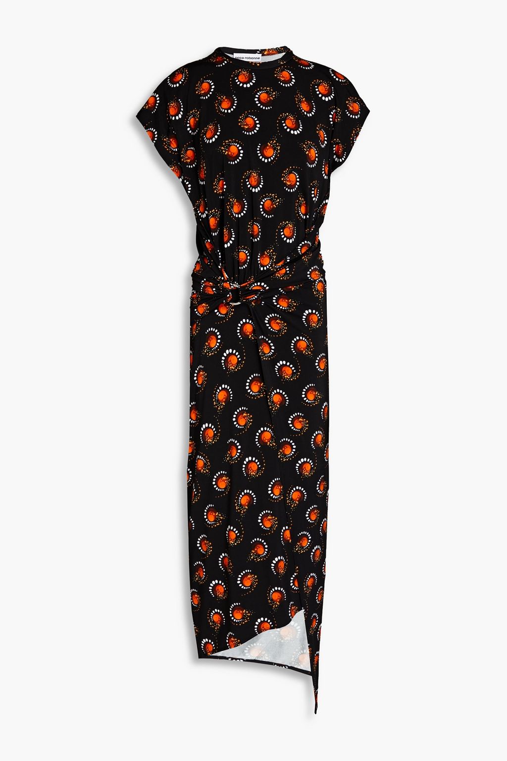 RABANNE Asymmetric wrap-effect printed jersey midi dress