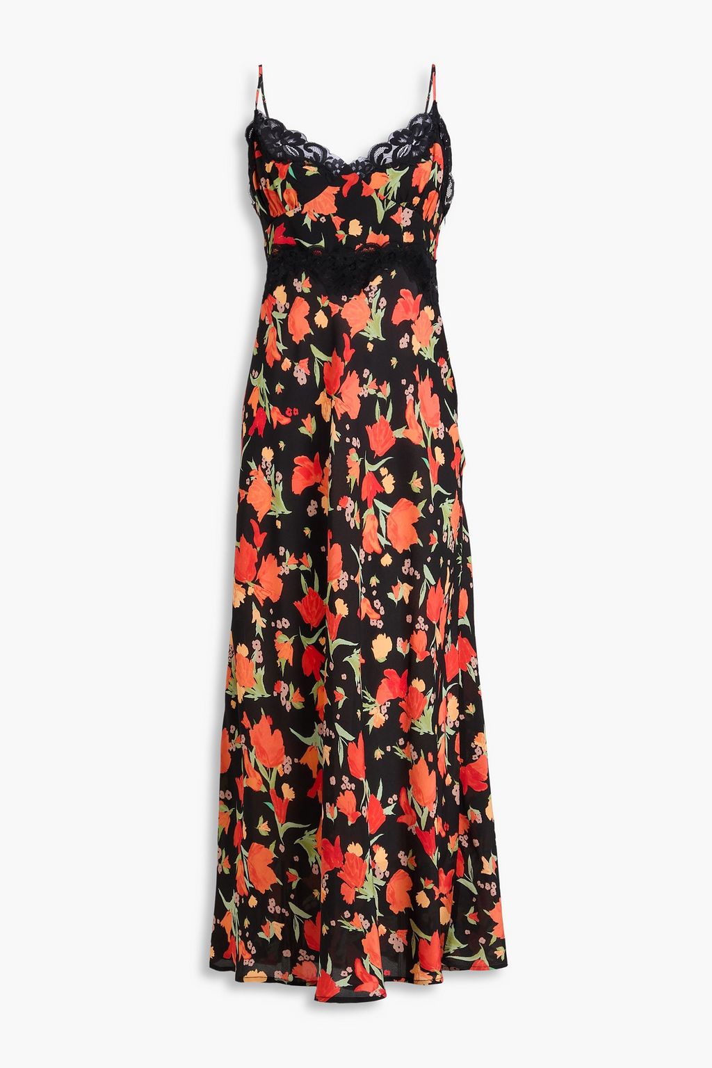 RIXO Lace-trimmed floral-print silk-crepon midi dress