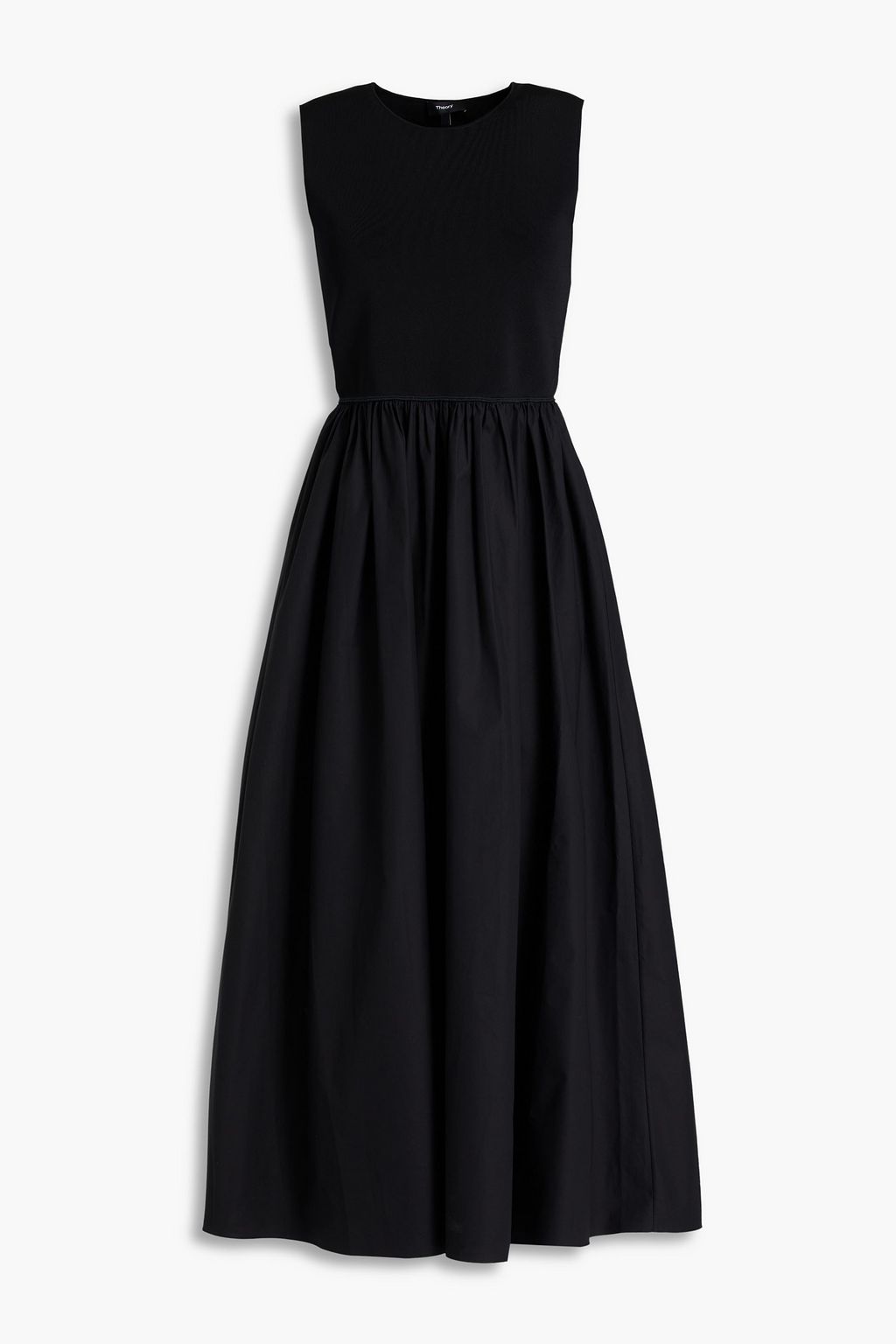 THEORY Stretch-knit and cotton-blend poplin midi dress