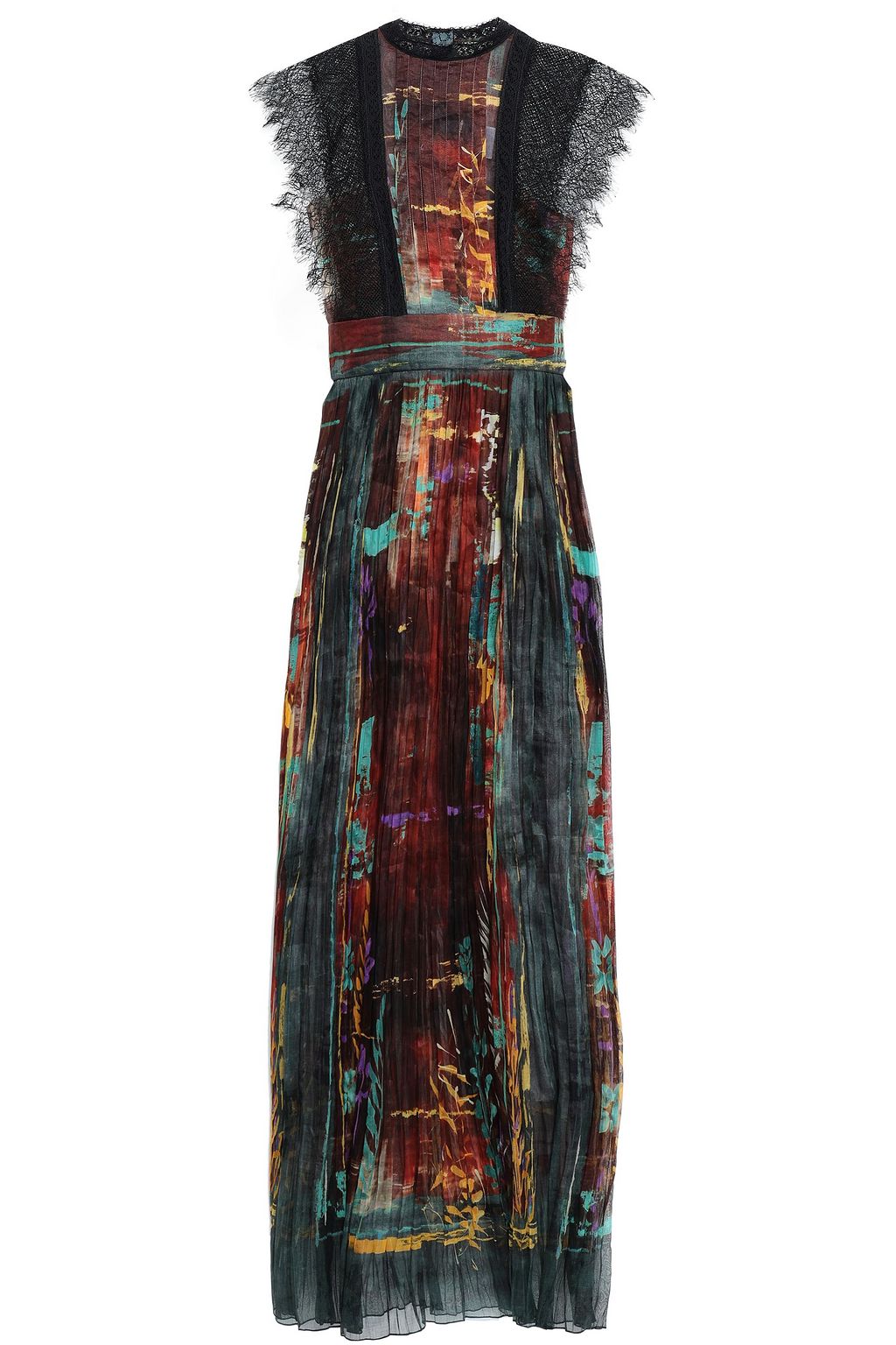 VALENTINO GARAVANI Lace-trimmed printed organza midi dress