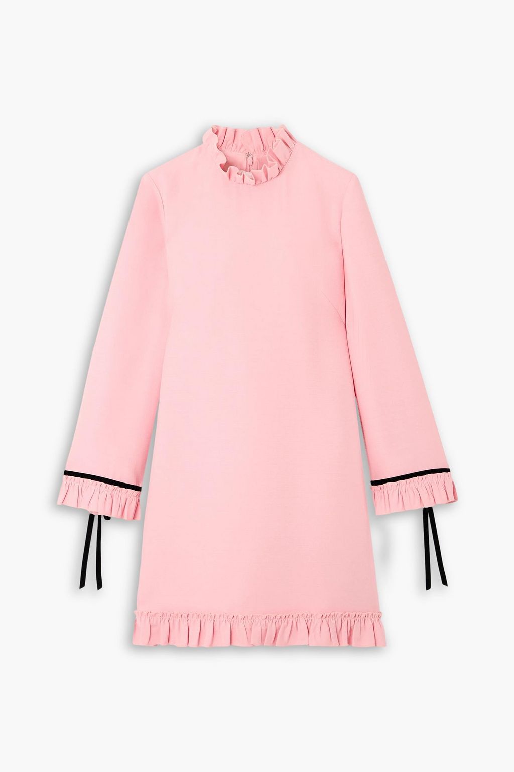 VALENTINO GARAVANI Ruffled velvet-trimmed wool and silk-blend crepe mini dress