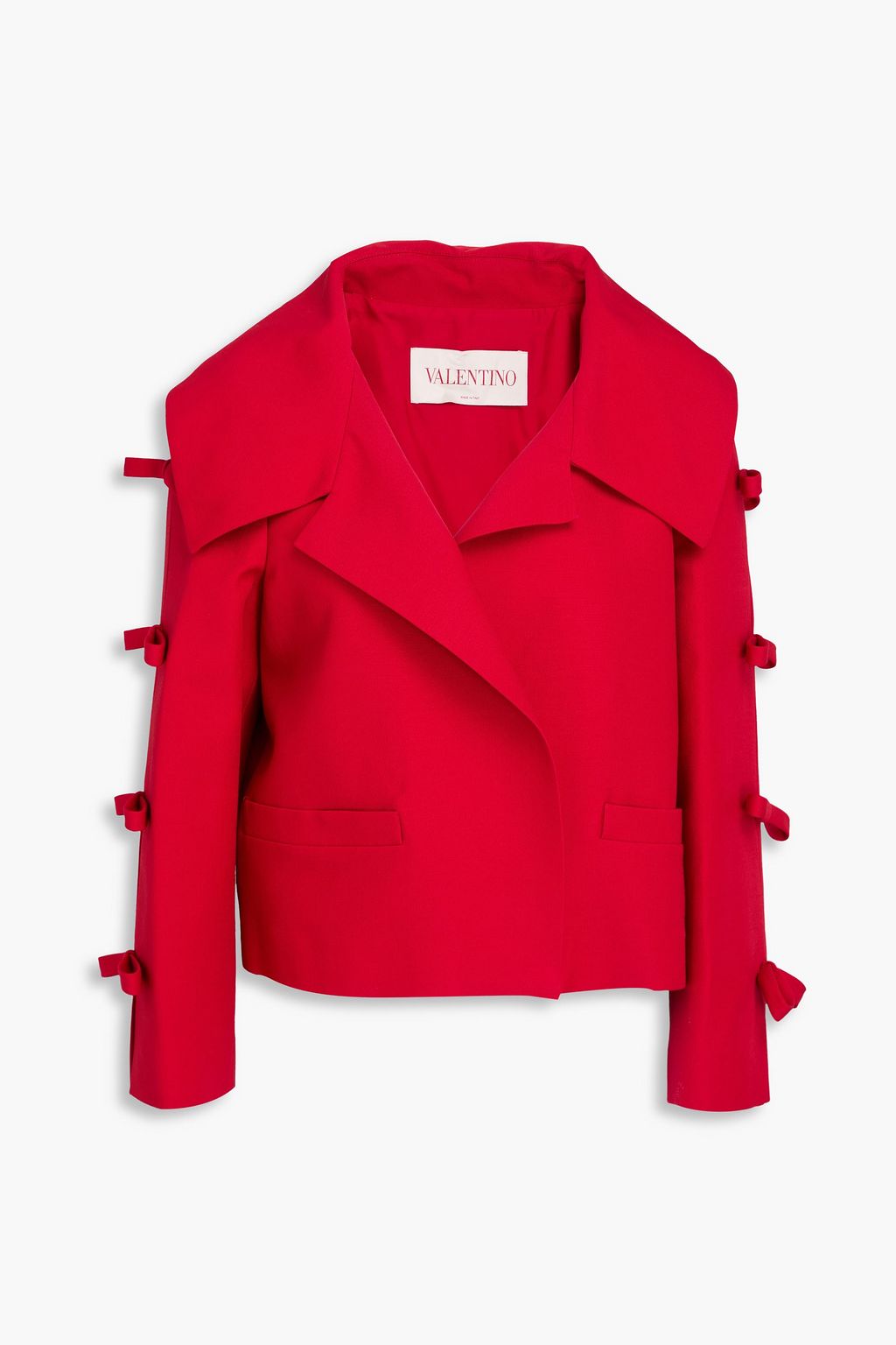 VALENTINO GARAVANI Cropped bow-detailed wool and silk-blend crepe jacket