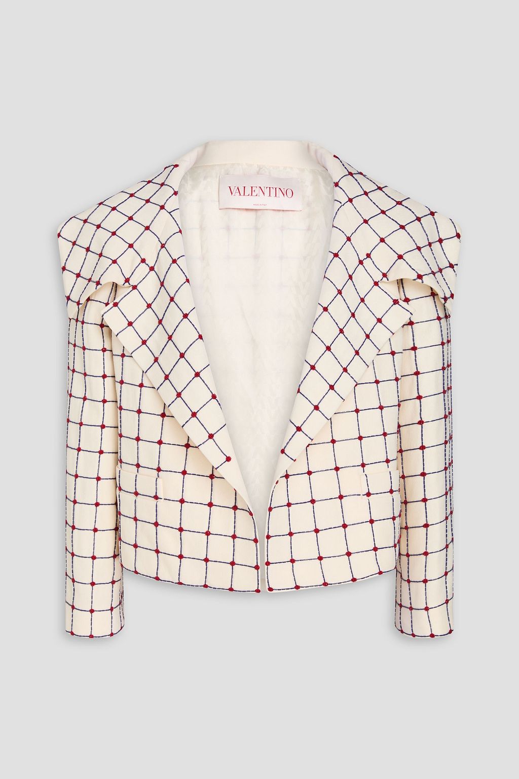 VALENTINO GARAVANI Cropped gingham wool and silk-blend crepe jacket