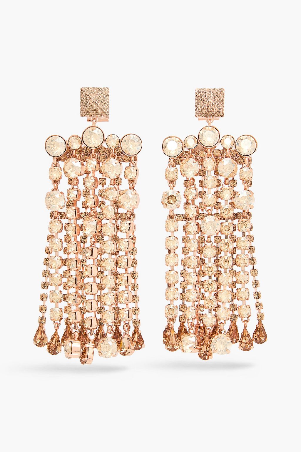 VALENTINO GARAVANI Fringed rose gold-tone crystal earrings