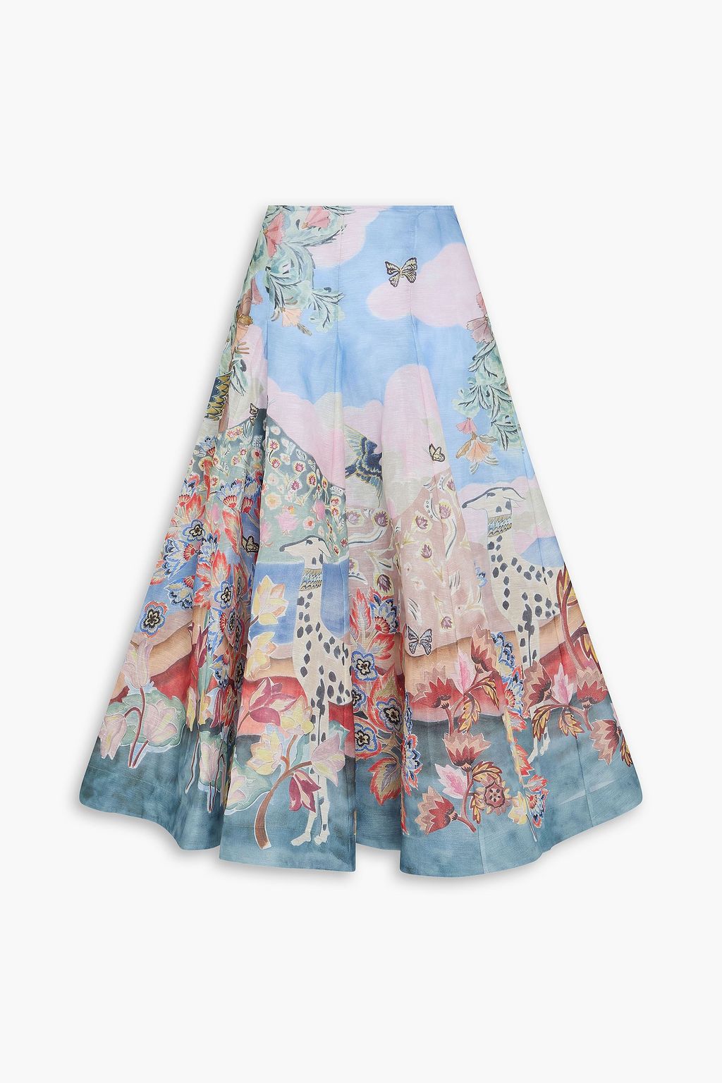 ZIMMERMANN Floral-print linen and silk-blend organza midi skirt