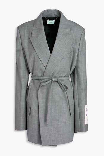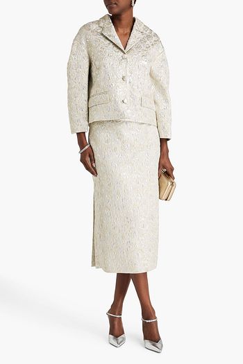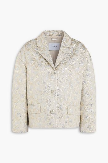 Cropped double-breasted herringbone bouclé-tweed jacket