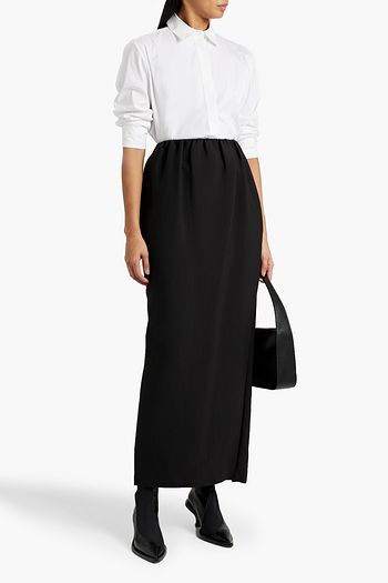 Paneled stretch-crepe midi dress