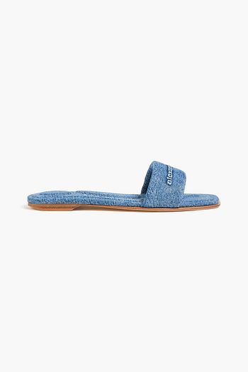 Maiolica Bianca leather-trimmed embroidered canvas slides