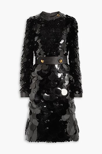 Sequin-embellished metallic striped ribbed-knit mini dress