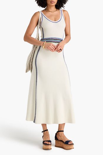 Bead-embellished cable-knit wool, cashmere and silk-blend midi dress