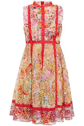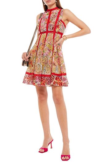 Lace-trimmed floral-print broderie anglaise cotton-blend mini dress