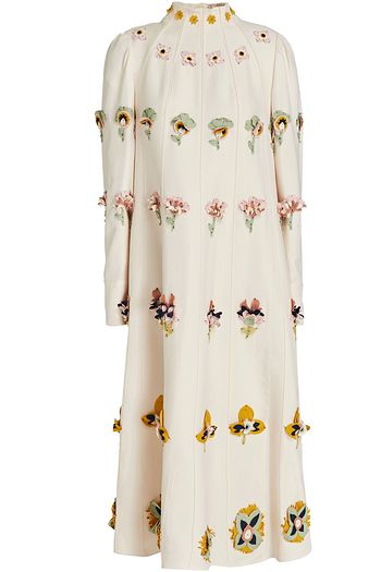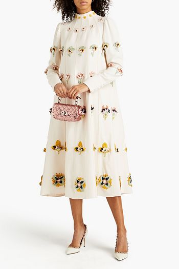 Floral-appliquéd wool and silk-blend crepe midi dress