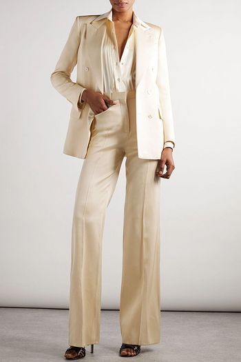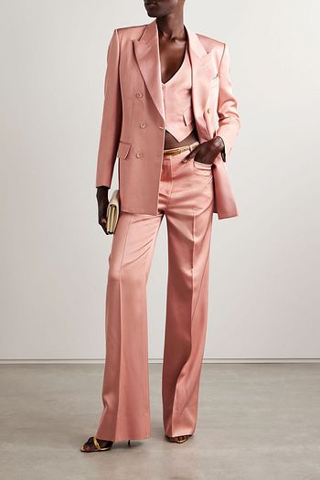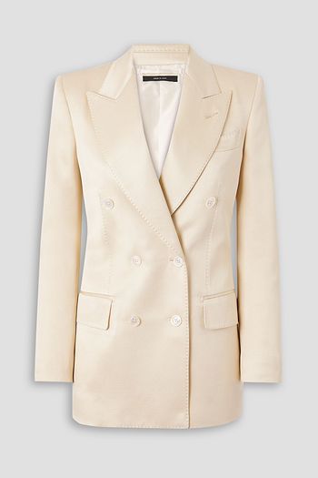 Double-breasted metallic embellished wool and silk-blend crepe blazer