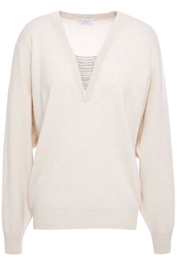Bead-embellished cashmere and silk-blend sweater