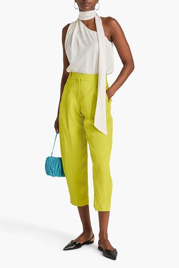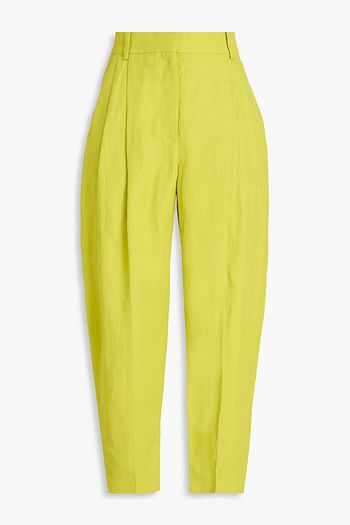 Pleated cotton-blend twill tapered pants