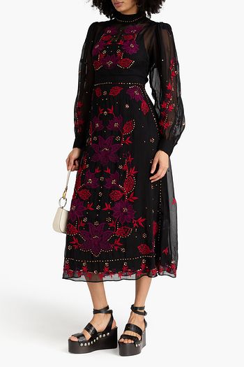 Embroidered bead-embellished organza midi dress