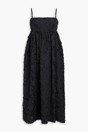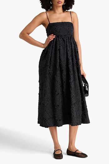 Pleated crepe and chiffon midi wrap dress