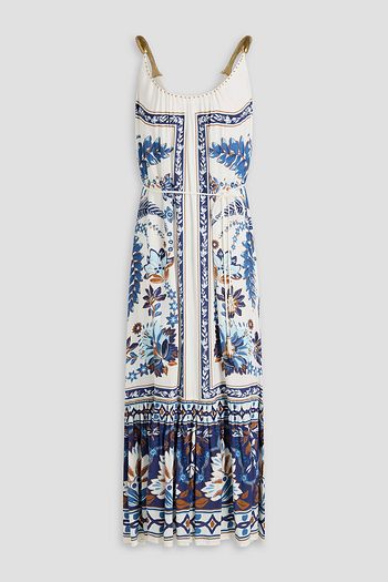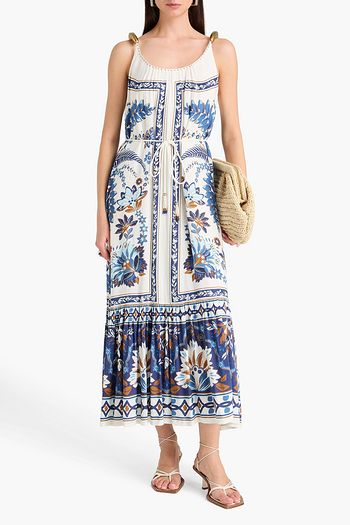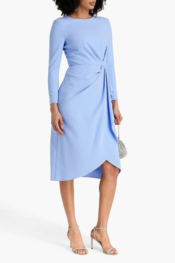 Gathered printed satin-crepe midi dress