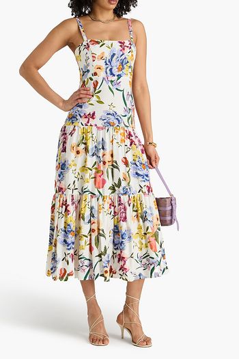 Belted printed cotton-poplin midi dress