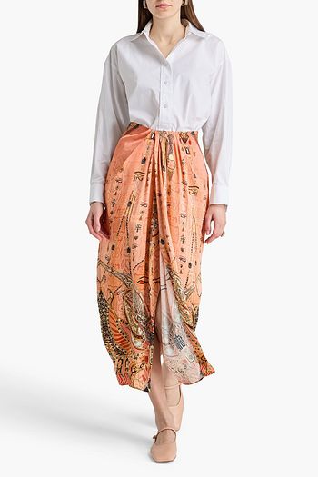 Printed silk-twill midi skirt