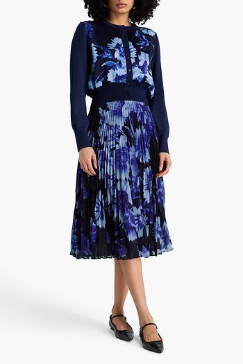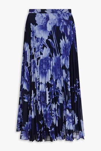 Pleated floral-print chiffon midi skirt