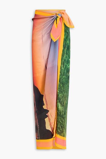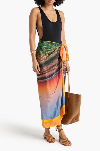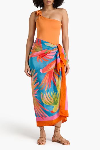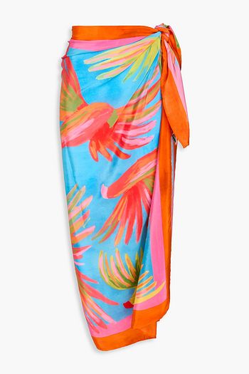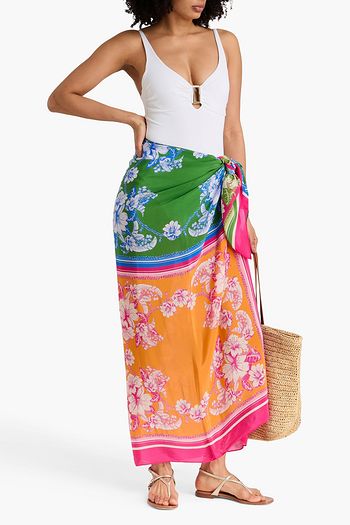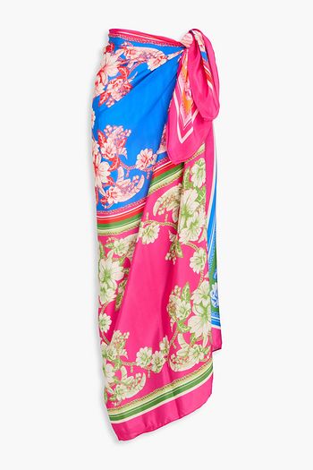 Floral-print crepe de chine pareo