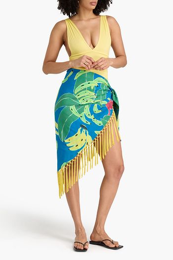 Tasseled printed twill pareo
