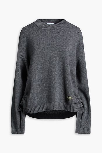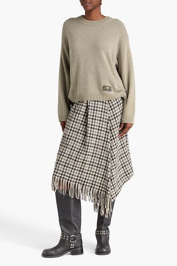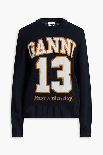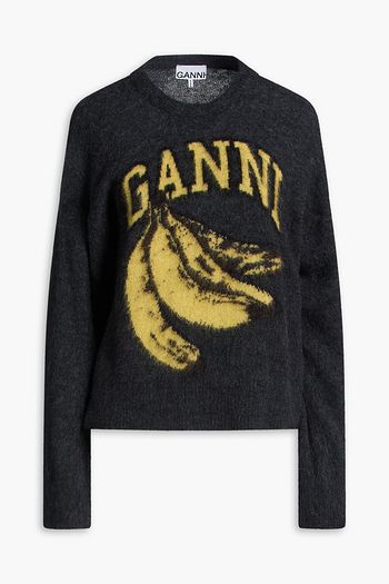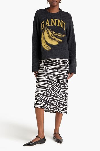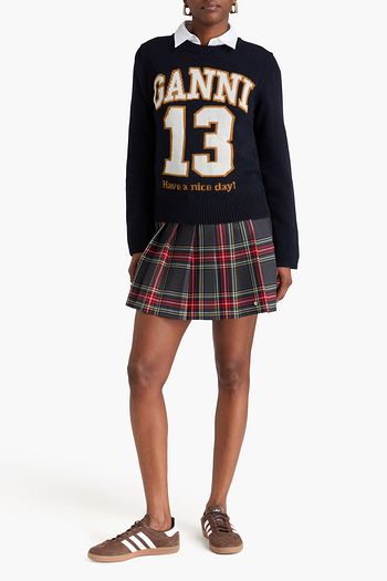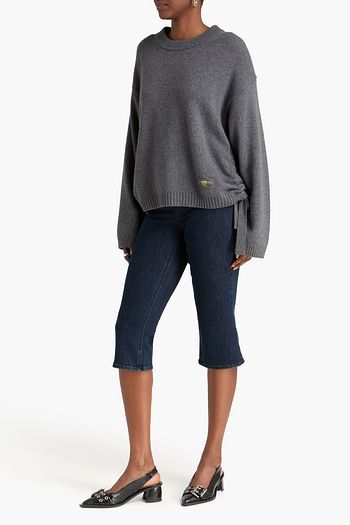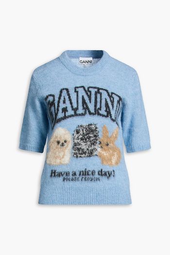 Cropped intarsia and pointelle-knit cotton-blend vest