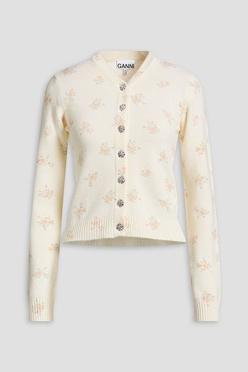 Crystal-embellished wool-blend cardigan