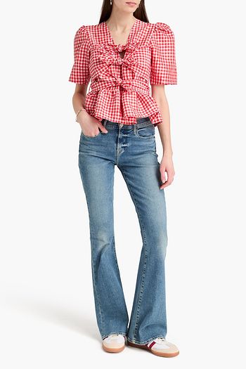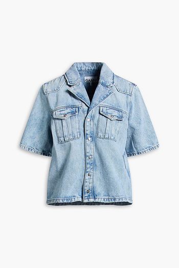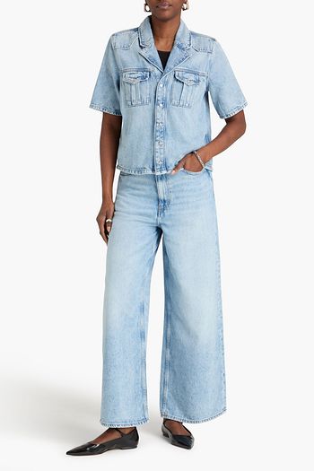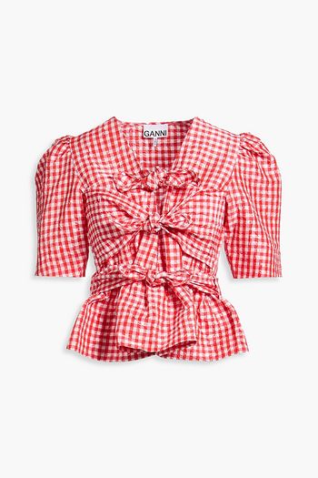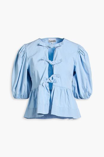 Cold-shoulder cropped metallic cotton-blend cloqué top