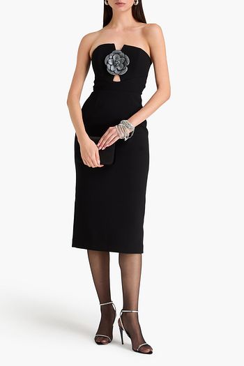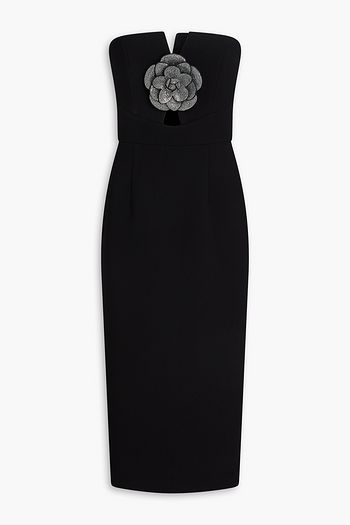 Lumi strapless floral-appliquéd lamé and crepe mini dress