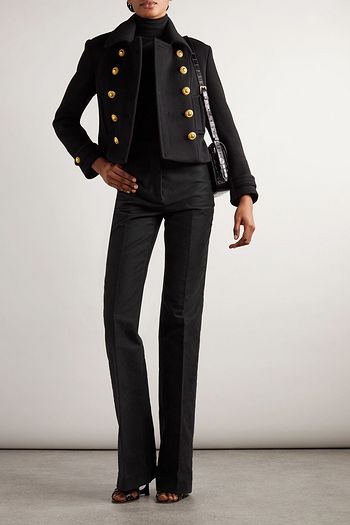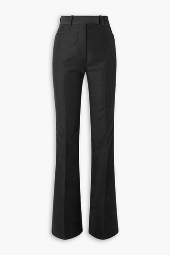 Satin-trimmed wool, mohair and silk-blend flared pants