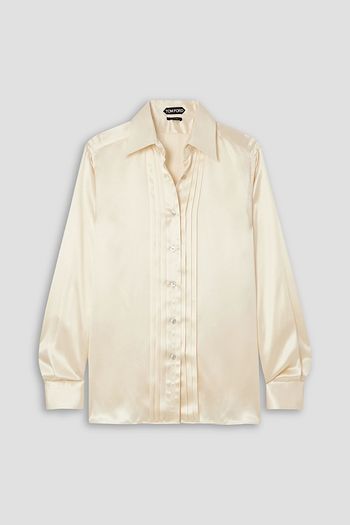 Pintucked silk-habotai shirt