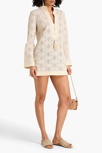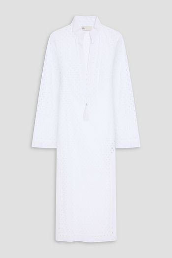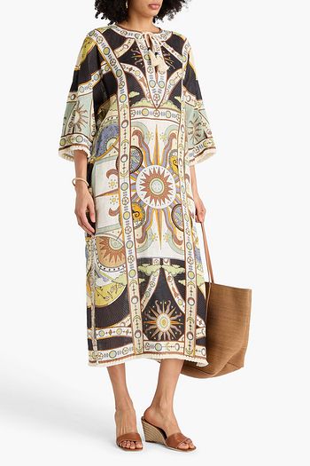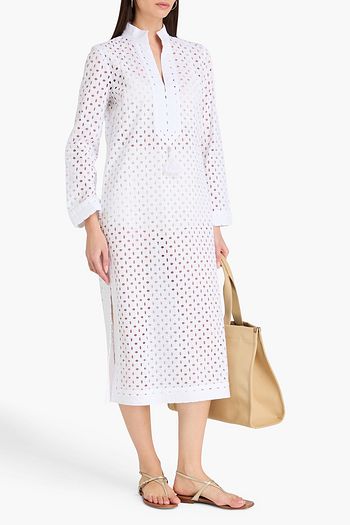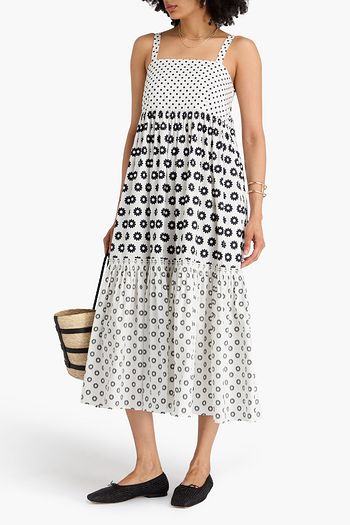 Crochet-trimmed ramie and cotton-blend gauze midi dress