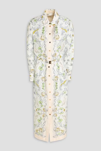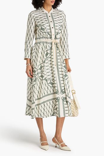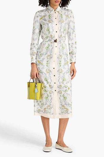 Belted printed silk-twill midi shirt dress