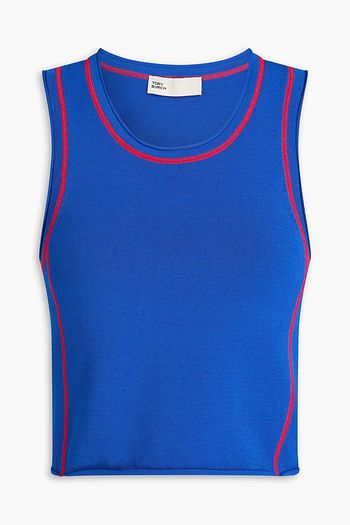 Two-tone pointelle-knit cotton polo shirt