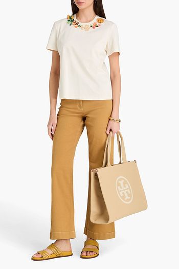 Bead-embellished embroidered cotton-blend tunic