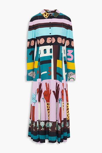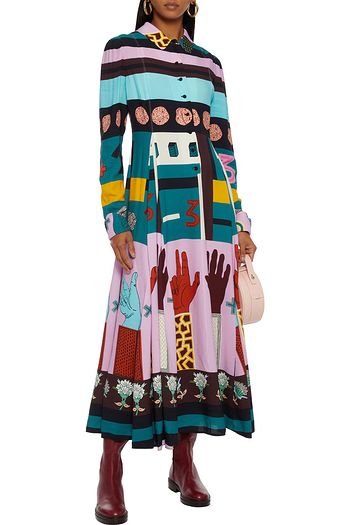 Printed silk crepe de chine midi shirt dress
