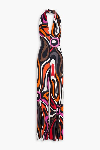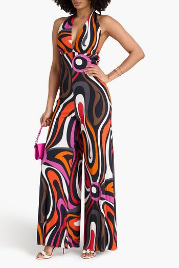 Printed jersey halterneck jumpsuit