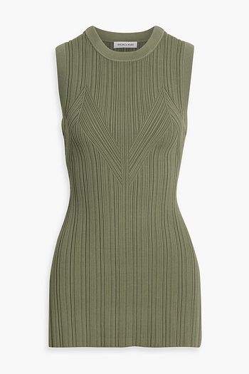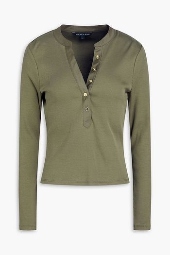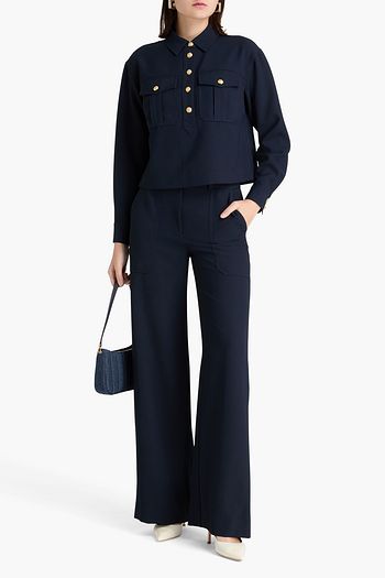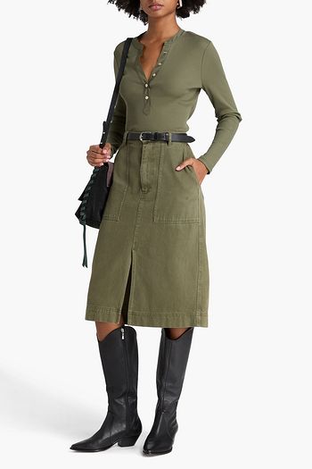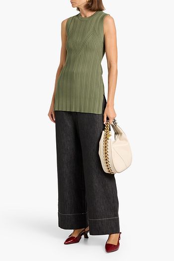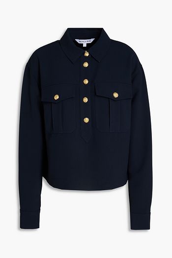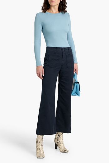 Kiki cropped off-the-shoulder stretch-knit and linen-blend top