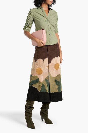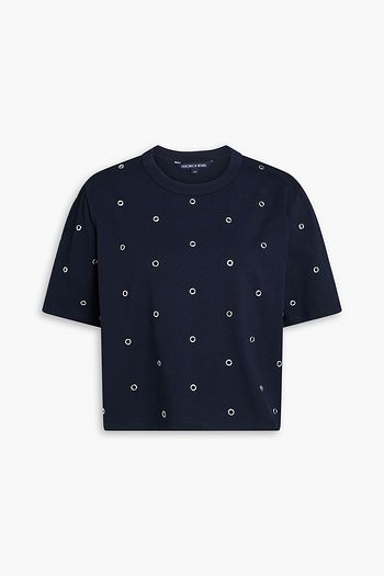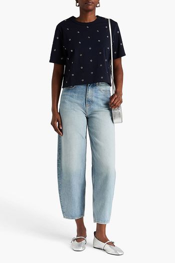 Crystal-embellished leopard-print linen and silk-blend gauze blouse