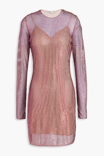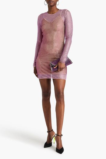 Carmella off-the-shoulder crystal-embellished satin-twill mini dress