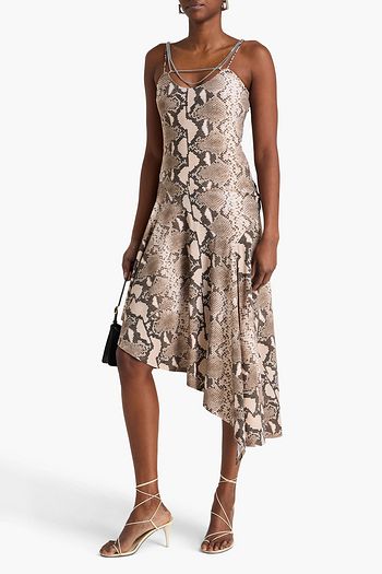 Jeanie floral-appliquéd printed crepe midi dress