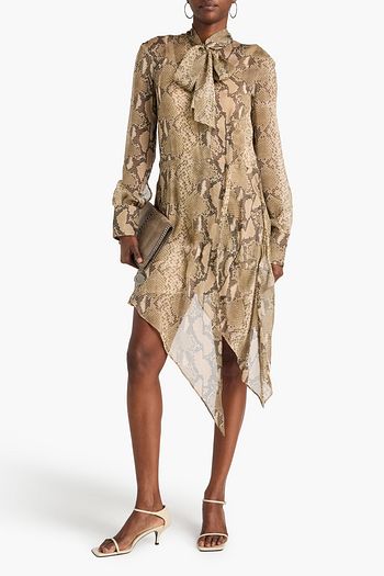 Lillian tie-neck printed georgette mini dress