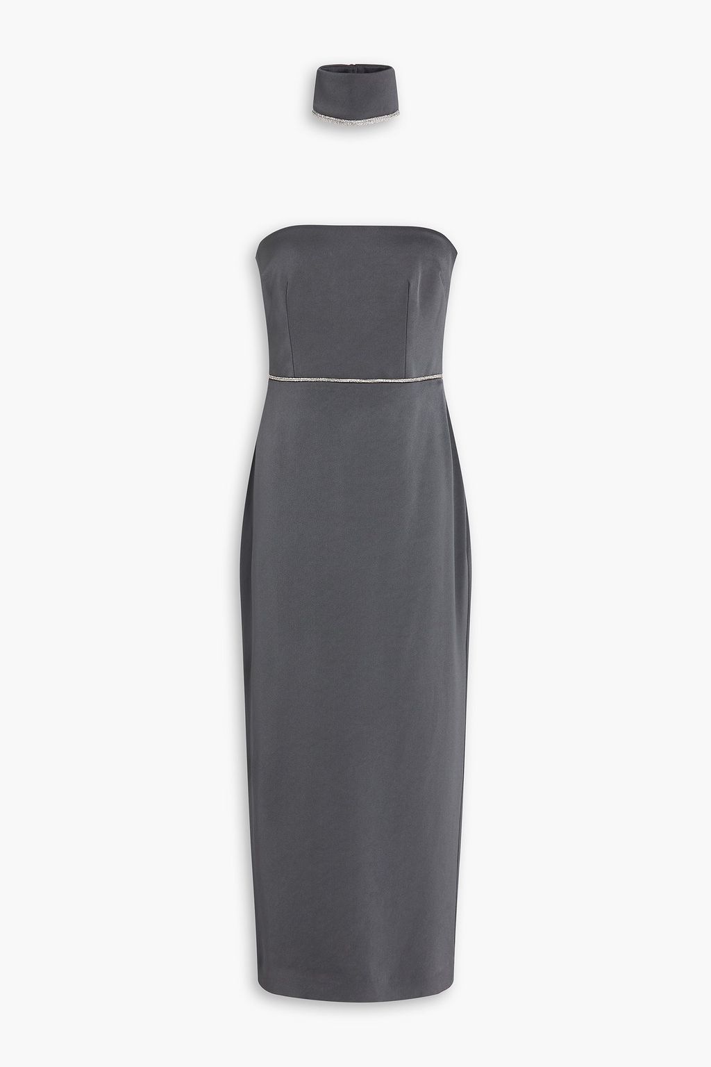 ALEX PERRY Strapless crystal-embellished satin-crepe midi dress
