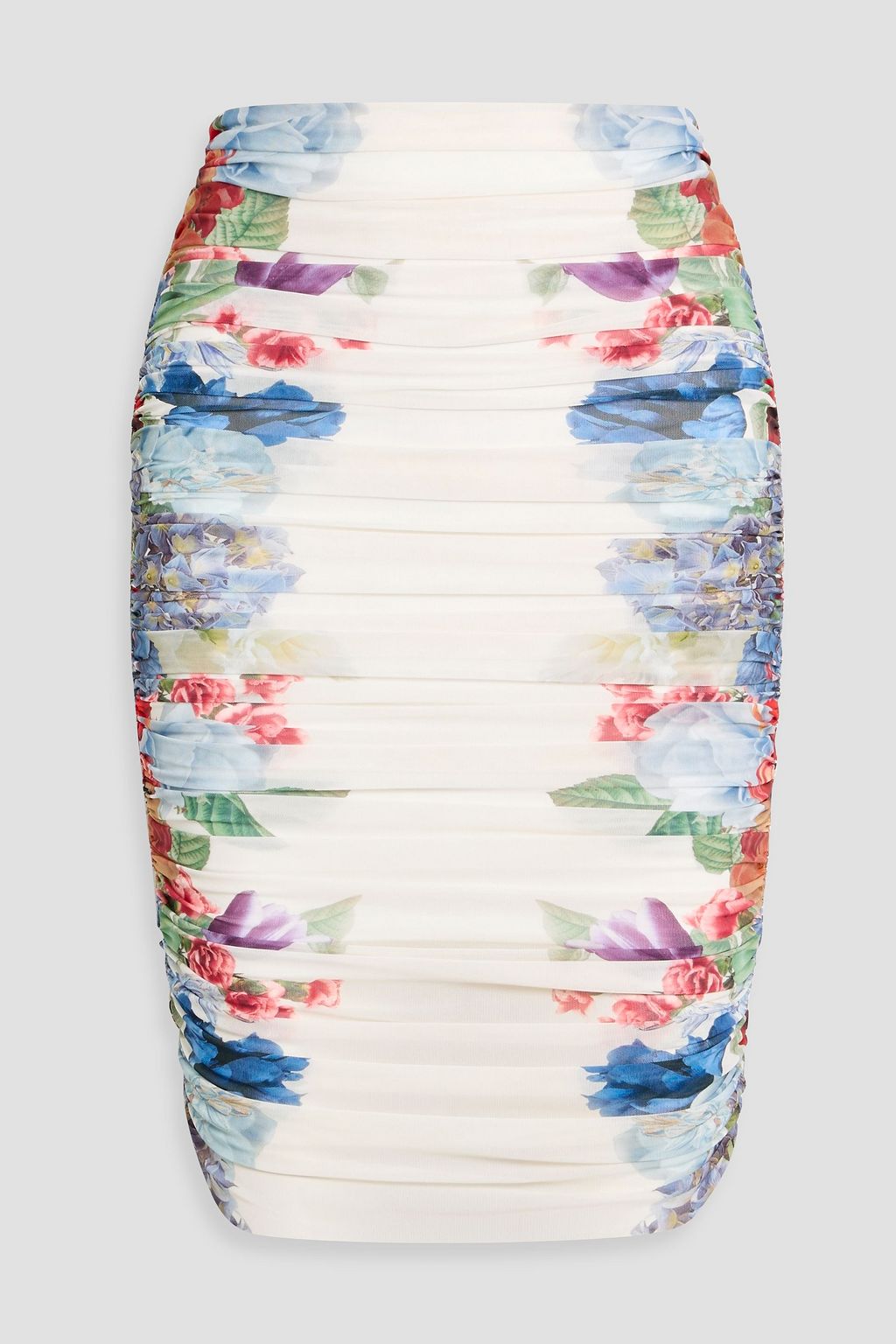 ALICE + OLIVIA Kennah ruched floral-print mesh skirt