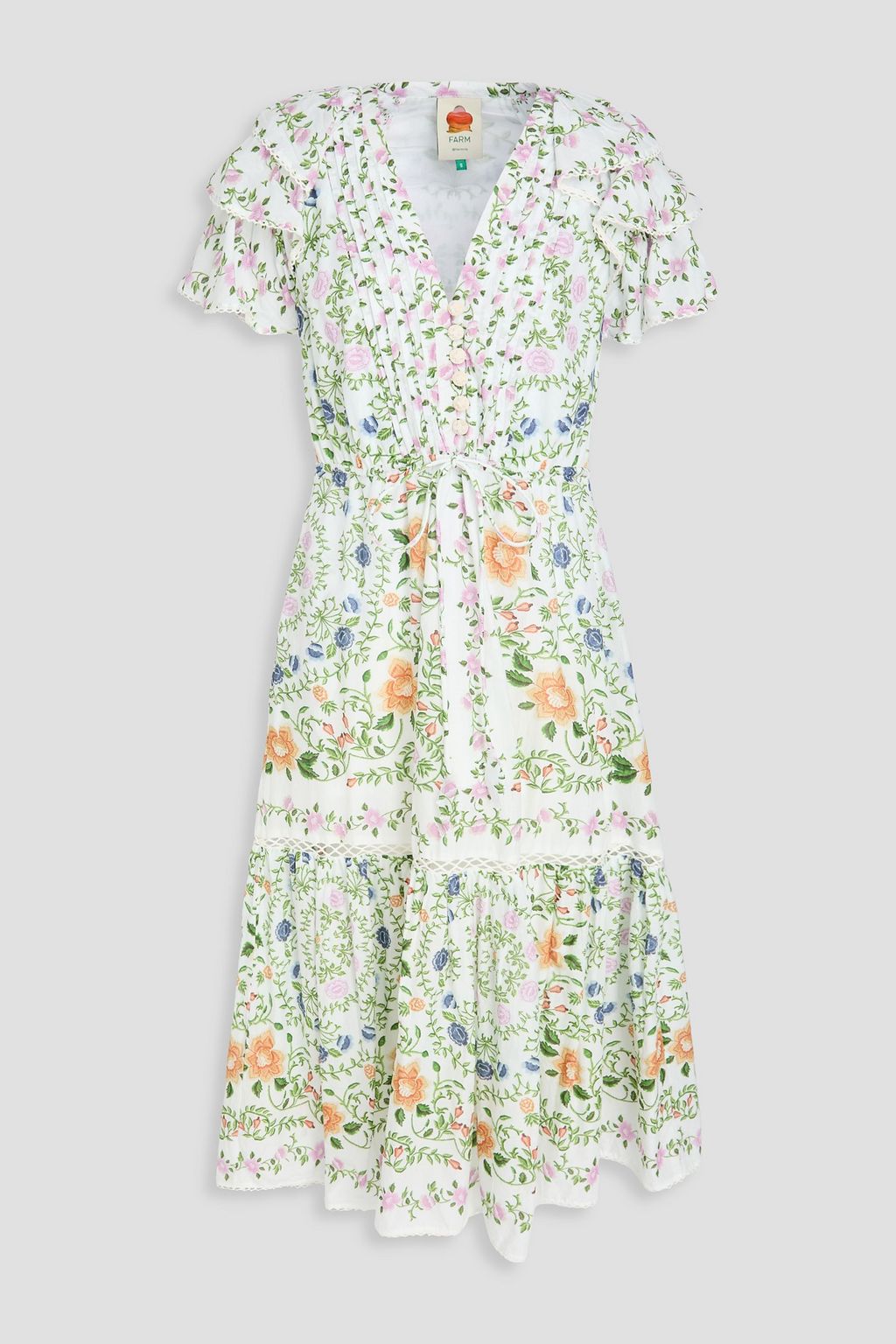 FARM RIO Crochet-trimmed floral-print cotton-voile midi dress