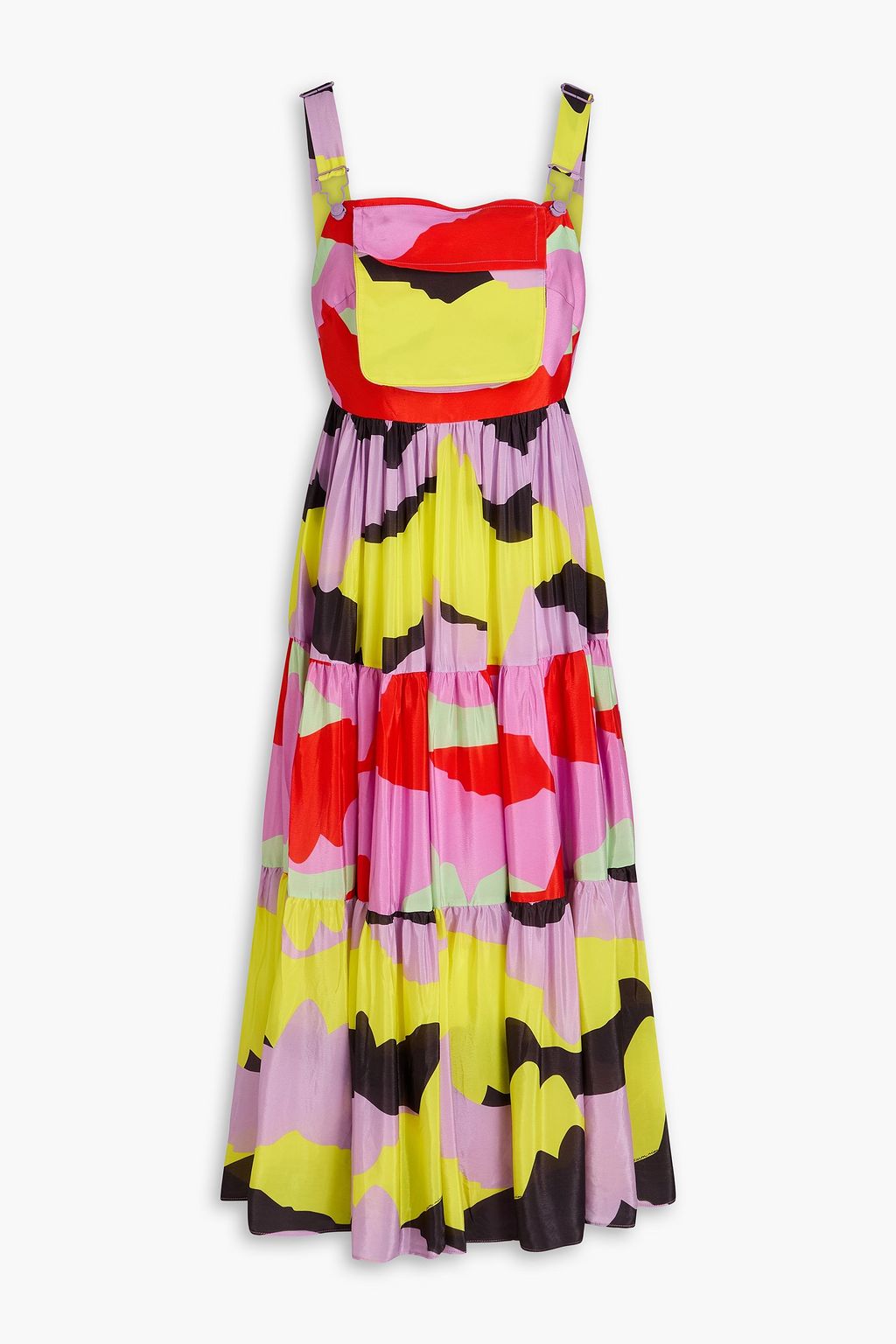 FARM RIO Gathered printed satin-crepe midi dress