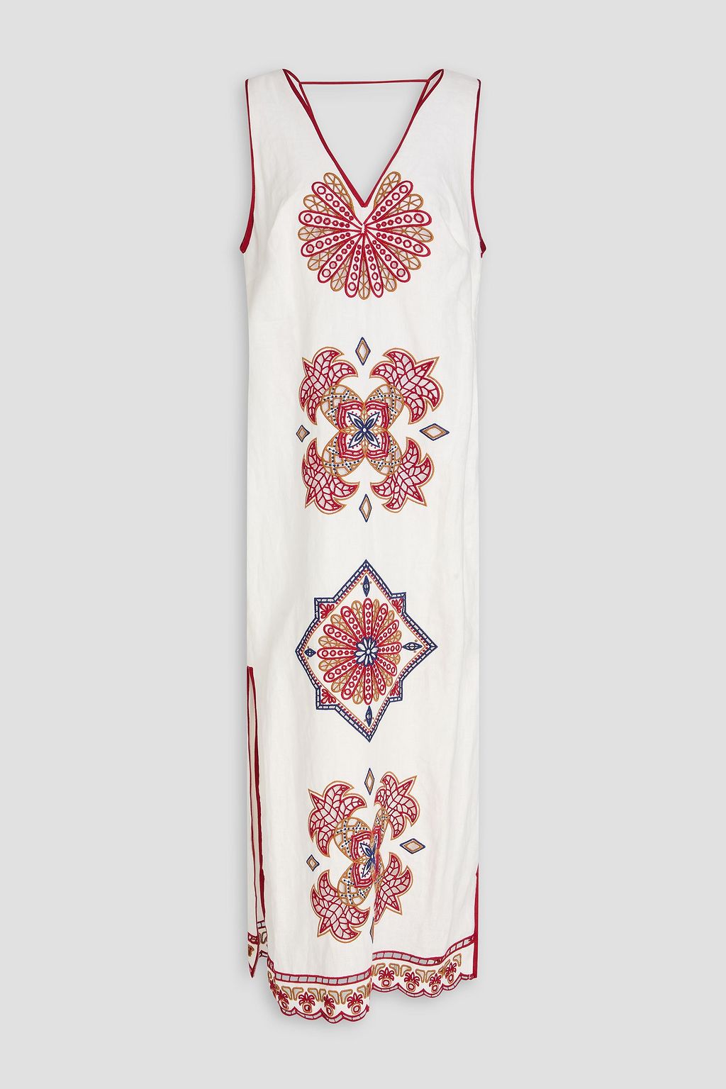 FARM RIO Marys macramé-trimmed linen midi dress