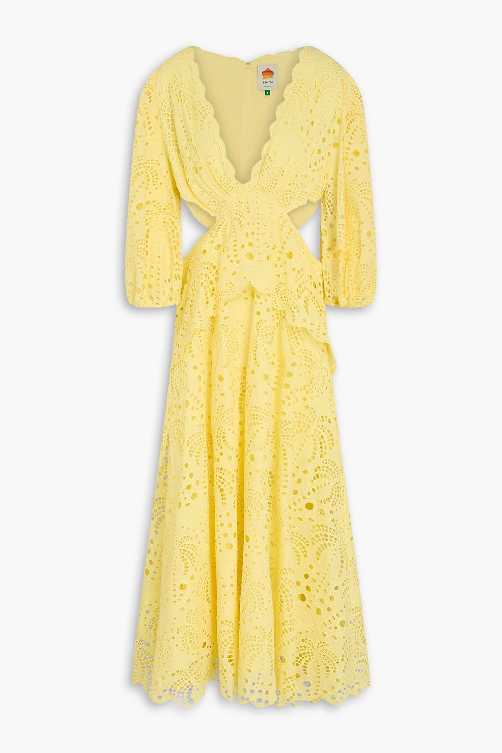 FARM RIO Richilieur cutout broderie anglaise cotton midi dress